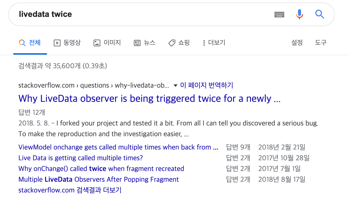 *구글에 LiveData twice 만 검색해도 고통을 겪은 많은 사람들을 볼 수 있다.